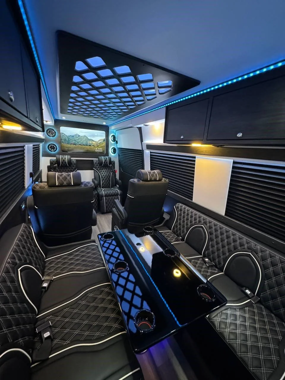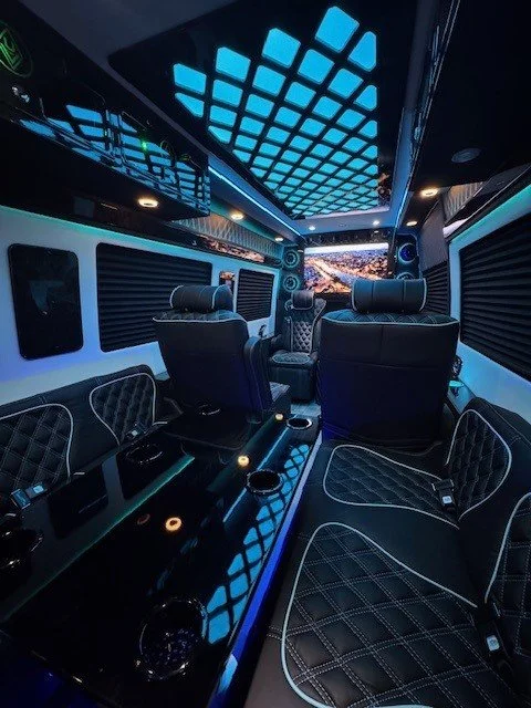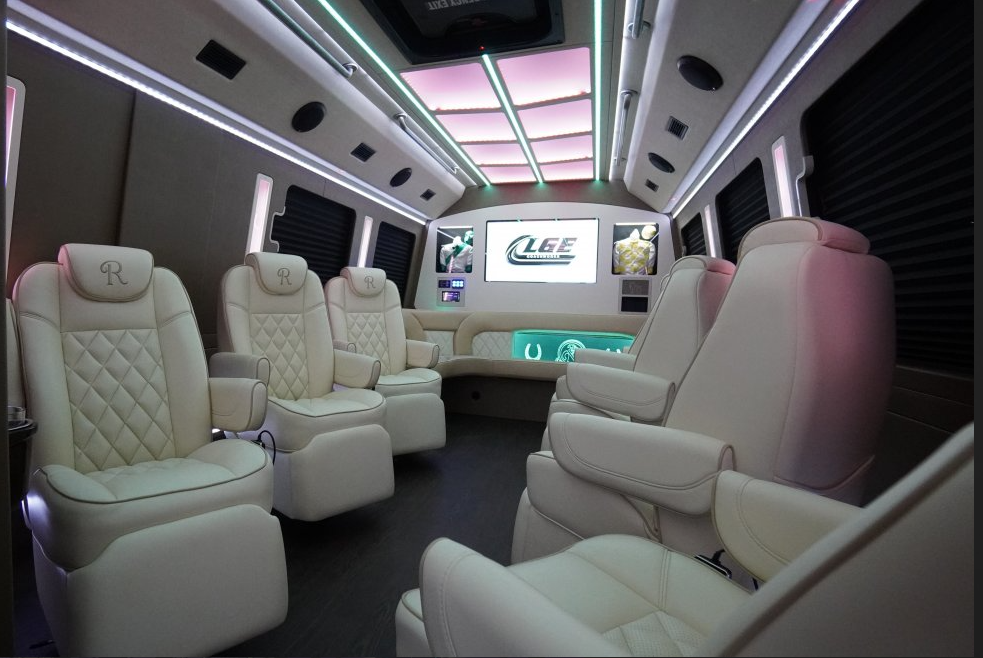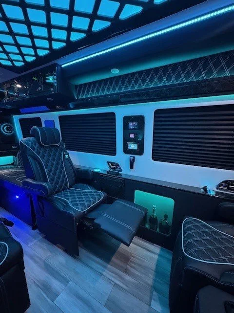 Time Time Travels has eight captian’s chairs with massage functionality, complimentary beverage bar, sound system, Wi-Fi, & Television